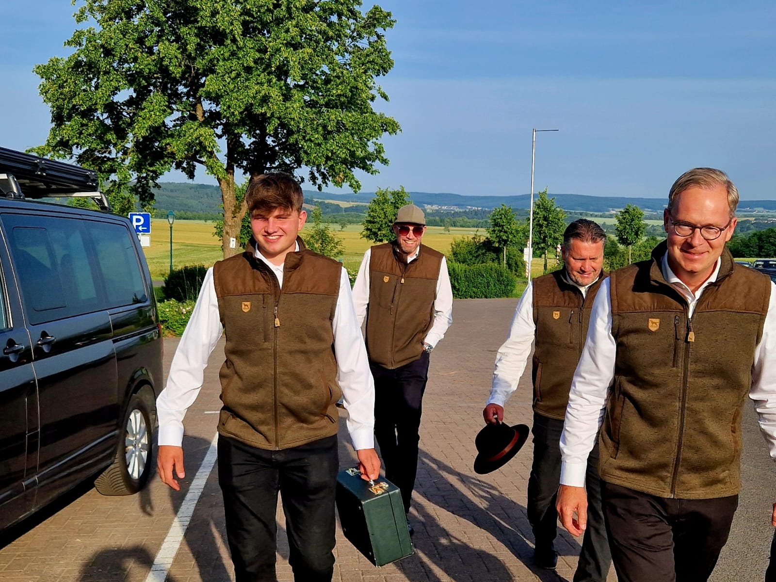 Jeder Jäger kennt die Situation, dass nach der Jagd nur sehr spärlich die Strecke verblasen wird. Wer bei uns mitmacht, wird sein Horn auch auf der Jagd dabei haben und die Strecke verblasen. Das ist nicht nur eine gute Tradition, sondern auch eine schöne Sache. Wenn statt drei Personen plötzlich zehn blasen, ist das schon beeindruckend.