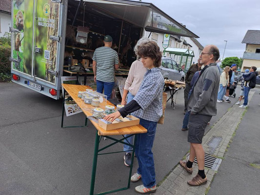 Am letzten Maiwochenende waren die beiden Waldpädagogen des JV-Hubertus Gießen, Dr. Christian Rosar und Ralf Weber mit der Rollenden Waldschule zum Hoffest in Garbenteich gestartet. Organisiert hatte die Veranstaltung der Landwirt Sven Arnold und mehrere Ortsvereine aus Garbenteich. Auf dem Rewe-Parkplatz waren mehrere Stände aufgebaut und in direkter Nachbarschaft zu Imkern und der Hessischen Gesellschaft für Ornithologie und Naturschutz e.V. hatte sich die Rollende Waldschule eingereiht und schon beim Aufbau fanden erste Gespräche zwischen den Naturschützern statt.