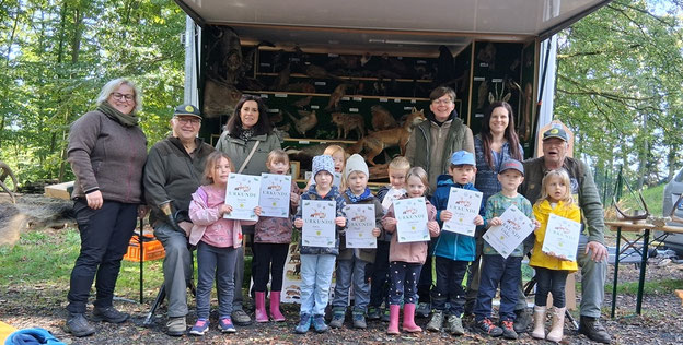 Ein Naturerlebnis der besonderen Art konnten die Kinder der Vorschulgruppen der Kindergärten, Schatzkiste und Finkenweg, der Gemeinde Krofdorf-Gleiberg erleben, denn der Besuch der Rollenden Waldschule des JV-Hubertus Gießen stand an.