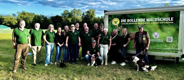 Unterstützt wurden die Waldpädagogen von der Jägerschaft Garbenteich, einem Ortsteil der Stadt Pohlheim. Trotz des regnerischen Wetters war die Veranstaltung mit ca. 500 Besuchern sehr gut besucht. Das bei solchen Veranstaltungen Kinder die Rollende Waldschule regelrecht belagern, daran waren die Waldpädagogen schon gewohnt, jedoch hatte man an diesem Tag auch sehr viele Erwachsene als Publikum, denn die Jagd ist fester Bestandteil im ländlichen Lebensraum.